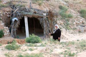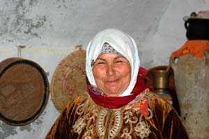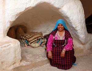 Przeważnie kobiety starsze, chociaż bywają i młodsze. Wszystkie w tradycyjnych strojach, z ozdobami oraz w białych chustach na głowach. Aby dostać się do któregoś z takich domów, trzeba zejść w dół po wydrążonych w miękkiej skale stopniach na, wspomniany już, niewielki dziedziniec.