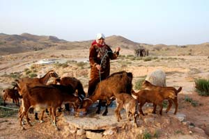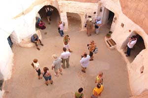 Nazywają ich Troglodytami – jaskiniowcami. Chociaż nigdy nie żyli w jaskiniach, lecz w wydrążanych od setek lat w miękkiej skale pieczarach, nie różniących się specjalnie od współczesnych tunezyjskich wiejskich domów. Poza tym, że schodzi się do nich w dół, na coś w rodzaju centralnego patia, z którego są wejścia do pomieszczeń mieszkalnych i gospodarczych, a także dla kóz i owiec. Pieczary te chronią mieszkańców przed pustynnym słońcem, piaskowymi burzami i niezwykle rzadkimi tu opadami. I mają dodatkowy walor: przez cały rok jest w nich stała temperatura około 17ºC. Od ponad pół wieku zresztą tylko nieliczne z tych podziemnych domostw zamieszkane są jeszcze na stałe.