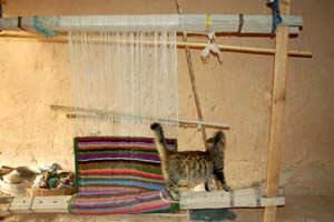 Z legowiskami i podłogami – klepiskami pokrytymi narzutami i kilimami, ozdobami na ścianach, kuchniami z tradycyjnym wyposażeniem w metalowe garnki i gliniane naczynia. W jednym z takich domów natrafiam na krosno z rozpoczętą pracą przy tkaniu wielobarwnego kilimka czy chodniczka, który zainteresował bawiącego się kotka.