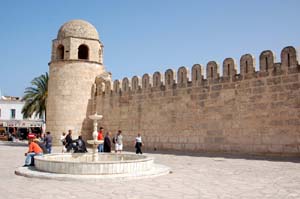 Popadł nawet częściowo w ruinę, ale odbudowano go w 1722 roku zamieniając na szkołę koraniczną. Dodam, że z wieży ribatu mułłowie nawoływali w przeszłości wiernych do modlitwy, gdyż pobliski Wielki Meczet zbudowany w 851 roku nie miał, jak większość ówczesnych świątyń islamu, minaretu. Wielki Meczet stoi nie, jak było to w zwyczaju, w centrum, lecz na skraju medyny.