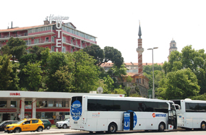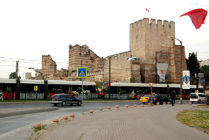 Dodam, że ruch pojazdów transportu miejskiego, zwłaszcza autobusów oraz metrobusów, dostosowywany jest do potrzeb podróżnych. W godzinach poza szczytami przewozowymi parkują one w wyznaczonych miejscach. Trafiłem na jedno takie np. wewnątrz dawnych murów obronnych Bizancjum, między bramą Edirnekapi i zabytkowym meczetem Mihrimah Sultancami.