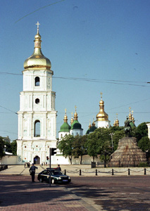 W dolnej części tego plakatu dostrzegam widok soboru w okresie średniowiecza – rekonstrukcję J. Asejewa, M. Wołkowa i M. Kresalnyja oraz w jego współczesnej, barokowej formie. Gdy podchodzę bliżej, ze zdumieniem odczytuję tekst: „1011 – 2011. Sofii Kyiwśkij 1000 rokiw” – 1000–lecie Sofii Kijowskiej.