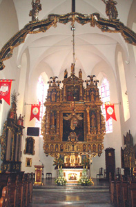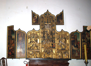 Najcenniejszym zabytkiem jest jednak przepiękny gotycki tryptyk znajdujący się w prezbiterium na ścianie po prawej stronie ołtarza głównego. Rzeźbiony w drewnie, złocony i polichromowany, przedstawia sceny Męki Pańskiej. Wykonany został w XVI w. w Antwerpii.