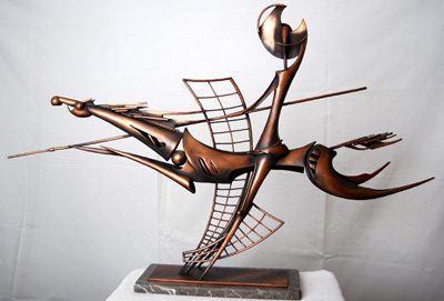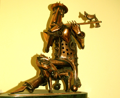 Jak i niezwykłej techniki wykonania, z miedzianej, patynowanej blachy i drutu. Wymyślił ją, doskonaląc z dziećmi, bo Sława ma siostrę Alisę, też rzeźbiarkę, ich ojciec Mykoła Didkowski.