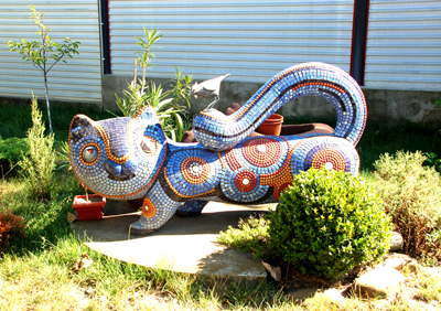 W ogrodzie, oprócz wielkiej ważki z miedzi oraz naczyń zdobionych mozaiką, pojawił się ogromny ceramiczny kot z ptakiem siedzącym mu na ogonie. Dwa kolejne stoją w jednym z pokoi. Świetnie prezentują się obrazy w bogatych ramach z miedzi i drewna z pierwszego okresu twórczości, jeszcze w Berdyczowie.