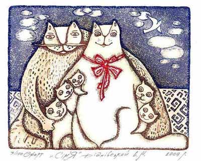 I trzymającego w drugiej dłoni klepsydrę czasu nad stołem z półmiskiem, na którym leży upieczony prosiak. To tylko przykłady wielu znakomitych rzeźb tego artysty. Członka Nacionalnoi Spiłki Chudożnikiw Ukrainy (Narodowego Związku Artystów Plastyków).
