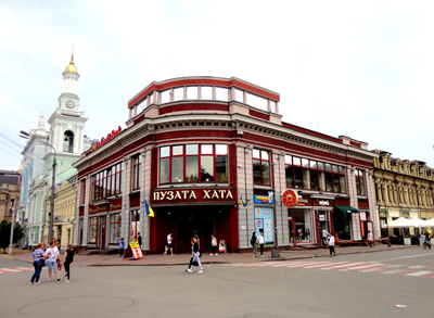 Barszcz ukraiński 31, zupa – krem grzybowa – 29, ziemniaki po wiejsku – 26, kasza gryczana z grzybami – 22 hrywny itp. Czyli najdroższe danie za 4,50 złotego. Mnie polecono i sam też polecam, sieć ukraińskich barów samoobsługowych „Puzata Chata” specjalizujących się w kuchni ukraińskiej. Szybkich, smacznych i niedrogich.