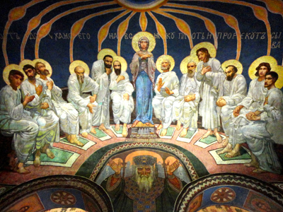 Tu, w Cerkwi Kiriłłowskiej, namalował m.in. dużą scenę „Wjazd Jezusa do Jerozolimy”. I jeszcze większą „Zesłanie Ducha Świętego” z Marią w centrum, w otoczeniu 12 apostołów, a pod nią wizerunek „Cara Kosmosa”.