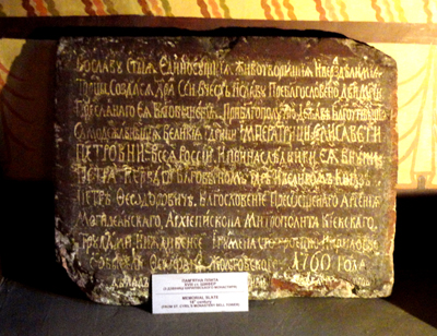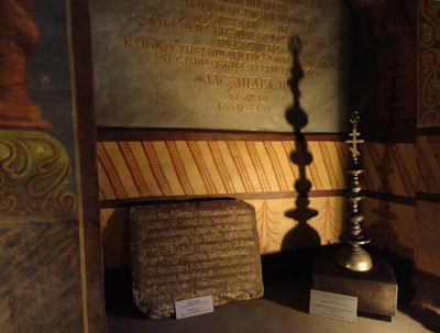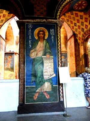 Wspomnieć muszę jeszcze o tzw. graffiti. Tak nazywane są tu, oraz w Soborze Sofijskim, napisy wyryte dawno temu rylcami lub igłami na starych freskach. Nie znalazłem na ich temat żadnej wzmianki w znanych mi przewodnikach i innych źródłach. Dowiedziałem się o nich dopiero od oprowadzających mnie dyrektorów tych placówek.