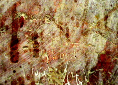 Znajdują się one zresztą w miejscach mało widocznych, na obrzeżach lub w ciemnych miejscach fresków. Może, a o ile tak, to słusznie, dyrekcja nie chce kusić potencjalnych naśladowców do pozostawiania współczesnych napisów, gdyż byłoby to barbarzyństwo. Dyr. Olga Korolowa pokazała mi ich jednak kilka.