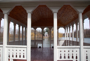 Po prostu spędzano ich tysiącami z podwodami i kazano kopać oraz wozić ziemię. Pracowało również około 800 rzemieślników i wykwalifikowanych robotników. Na około 150 hektarach jaru rzeczki Kamionki i jego okolic powstała inżynierska konstrukcja romantycznego parku. Wykopano dwa sztuczne stawy – górny i dolny z których ten drugi, położony 23 m niżej, miał ponad 80 tys. m² powierzchni.Łączyła je spadająca kaskadami rzeczka, a specjalna podziemna konstrukcja hydrauliczna doprowadzała wodę do wielkiej fontanny pośrodku stawu dolnego, ze strumieniami wody bijącymi w górę na 20 metrów. Powstała też śluza umożliwiająca podnoszenie i opuszczanie łodzi, którymi pływali gospodarze i ich goście.