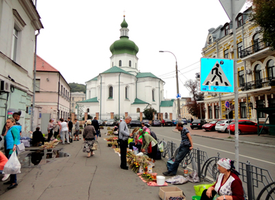 Stoi ona między nią i monumentalnym gmachem Muzeum Historycznego oraz w pobliżu sławnej Andrijiwśkoi Cerkwy – św. Andrzeja.