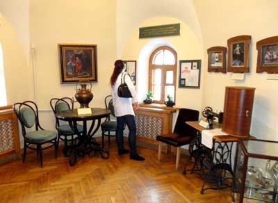 A wśród wielu innych składników garderoby również 20 koszul. „Strój dopełniała – czytam – szabla z żelazną oprawą oraz ładownica z migaczem z pobielonej blachy i rusznica.” W muzealnych salach i na korytarzach wystawione są także takie sprzęty i naczynia jak samowary, maszyna do szycia Lohmeyera z początku XX w. z opisem, zegar ścienny, meble i niezliczone drobne przedmioty w gablotach.
