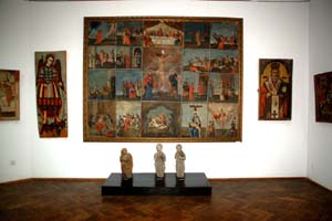 Na górnych piętrach gmachu wystawione są ikony o różnorodnej tematyce, malowane na drewnie, szkle i tkaninach. A także całe ich kompozycje przypominające ikonostasy.