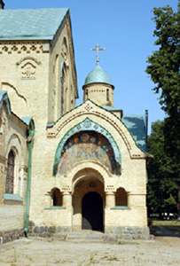 Zaś jako autora zewnętrznych mozaik młodego jeszcze, ale już sławnego, później jednego z najświetniejszych rosyjskich malarzy I połowy XX wieku, Mikołaja Rericha. To jemu zapewne cerkiew zawdzięcza, że nie została zburzona przez bolszewickich barbarzyńców.