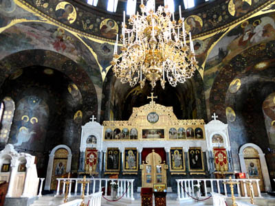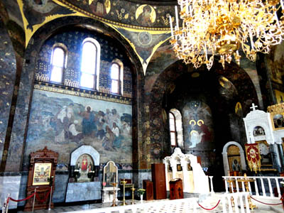 Cerkiew pokrywa ogromna, spłaszczona, przypominająca konstantynopolską Hagia Sofia, kopuła z 32 wąskimi oknami oświetlającymi wnętrze, zakończona latarnią z niewielką złoconą, cebulastą kopułką. I otoczona czterema latarniami z mniejszymi, takiego samego kształtu kopułkami.