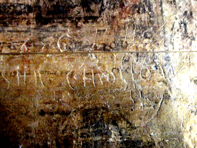 Ale te, które oglądam, niekiedy w narożnikach lub ciemnych miejscach wiekowych malowideł, to nie są teksty w rodzaju: „Byłem tu – Iwan (i data)”. Lecz niekiedy akty strzeliste do Boga lub świętych przedstawionych na freskach, prośby o pomoc, modlitwy. Głównie w języku ruskim, ale także innych, np. ormiańskim czy polskim. O czym świadczą litery „w” używane w tym regionie Europy tylko w naszym i niemieckim, ale ten drugi nie wchodził w grę w XVII-XVIII w. Chociaż tu nie udało mi się odczytać żadnego pełnego tekstu poza nazwiskiem Chrostowsky, niestety bez daty.