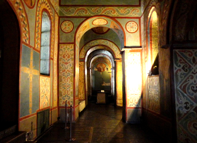 Nie kwapią się one z ich zwrotem. Klasztor ten, ze wspaniałą świątynią, odbudowano od fundamentów na początku XXI w. Ale to już inny temat. W Soborze Sofijskim obejrzałem również, w pomieszczeniach galerii na piętrze, ciekawą wystawę mozaik o tematyce religijnej. Współczesnych, ale stylizowanych na średniowieczne.