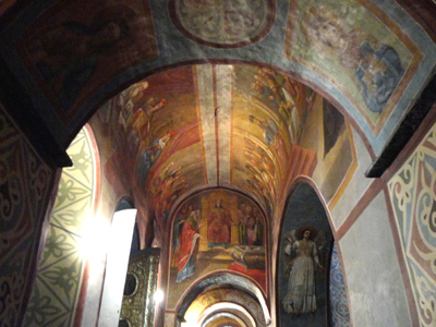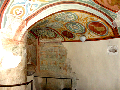 Dyr. Kornijenko pokazywał mi m.in., co jest jednym z tematów jego prac naukowych, a dla mnie okazało się nowością, tak zwane sgraffiti. Napisy wyryte jakimiś rylcami czy igłami przed wiekami na starych freskach. Dziś uważamy takie postępowanie za barbarzyństwo.