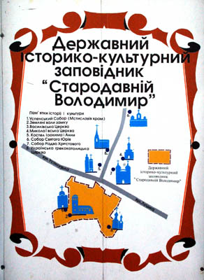 Na ścianie piętrowego domu koło stacji autobusowej w centrum rejonowego (powiatowego), 40-tysięcznego Włodzimierza Wołyńskiego, uwagę przyciąga jego duża, historyczna panorama. Tak to miasto wyglądało, w oczach współczesnych nam badaczy i rekonstruktorów, w okresie jego średniowiecznej stołeczności, czyli w wiekach X-XIII.