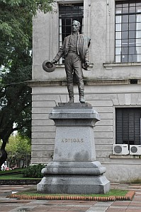 Stajemy przed pomnikiem Jose Artigasa, urugwajskiego bohatera narodowego, co skłania nas do sięgnięcia do pełnej wojen, bitew i awanturniczych epizodów historii Colonii del Sacramento. Miasto założyli w 1680 roku Portugalczycy, na drugim brzegu La Platy od Buenos Aires. Od początku istnienia mnóstwo tu było przemytników i różnej maści awanturników. Jednak nie oni byli głównymi sprawcami krwawych potyczek, które dobrze pamiętają stare mury obronne, ulokowane w nich działa, kamieniczki i place.