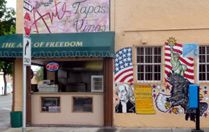 Choć rozwiązania komunikacyjne i oznaczenia dróg są na Florydzie wyjątkowo czytelne, trudno trafić do kubańskiej dzielnicy. Mój elektroniczny pilot głupieje, ja też choć wiem, że jesteśmy tuż, tuż głównej ulicy. Jest wczesne popołudnie, siąpi drobny deszcz. Typowa, kubańska ulica nie tętni bynajmniej życiem, wręcz przeciwnie, wieje pustką.
