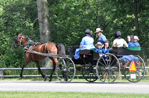 Na drogach pełna egzotyka – obok wielkich ciężarówek, szybkich motocykli i osobowych aut – czarne zakryte bryczki. Widziałam takie w głośnym filmie „Świadek” z Harrisonem Fordem. Na żywo oglądam to po raz pierwszy. Są także wozy odkryte. Ich wielkość dostosowana jest do rodziny. A te zazwyczaj są bardzo liczne. Sześcioro, siedmioro dzieci to standard.