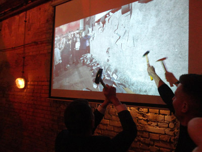 Podeszliśmy do jej dawnego budynku, na którego ogrodzeniu znajduje się tablica przypominająca tamte wydarzenia. Następnie pojechaliśmy do restauracji „Mała Warszawa” na Pradze, na finał wieczoru: kolację. Poprzedzoną jednak wirtualnym burzeniem przez nas Muru Berlińskiego. Dostaliśmy młotki, którymi symbolicznie waliliśmy w powietrzu, oglądając na ekranie tamten mur i jego rozpadanie się.