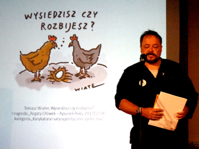 Nagrody główne „Rogaty Ołówek” w konkursie „Cztery Pory Karykatury. Rysunki Roku 2017/2018”, które wręczano na tle powiększonych prac laureatów, przyznano w dwu kategoriach: