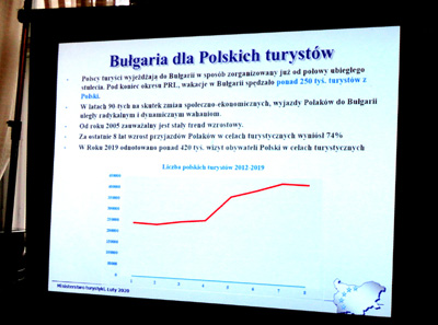 Więcej informacji na ten temat znalazło się w bułgarskiej prezentacji, a także padło podczas spotkania po niej minister z dziennikarzami. Andrzej Gut-Mostowy odczytał list minister Jadwigi Emilewicz do uczestników spotkania, w którym wyraziła zadowolenie dobrymi stosunkami polsko-bułgarskimi także w dziedzinie turystyki i nadzieję na ich dalszy rozwój. Wspomniała też o atrakcjach naszego kraju.
