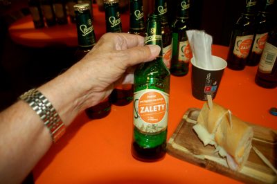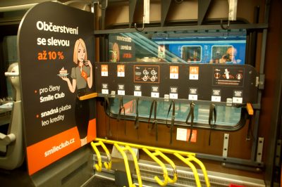 Osoby zaproszone na przyjazd pokazowego pociągu ugoszczone zostały tym, co mogą otrzymywać pasażerowie. Kanapkami z serem , wędlinami i ogórkami oraz napojami bezalkoholowymi i piwem „Prazdroj” ze znanego praskiego browaru w butelkach po 0,33 l. Jako ciekawostkę przytoczę, że na tradycyjnych na nich nalepkach naklejono doklejono inne, w dwu wariantach w języku polskim. Jedną typowo reklamową: „Podróż pociągiem ma swoje ZALETY – leo express” i drugą, ostrzegającą kierowców: „Za kierownicą NIE SPRÓBUJESZ – leo express”.