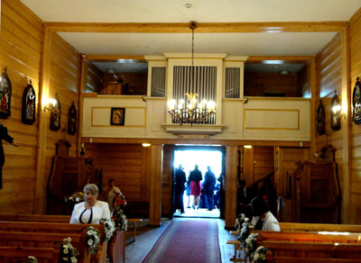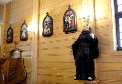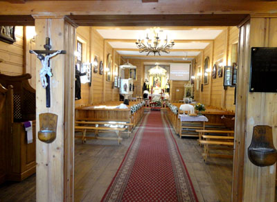 W jasnym wnętrzu świątyni o ścianach pokrytych drewnem, znajduje się kilka wartych zobaczenia zabytków. Przede wszystkim wspomniany ołtarz główny z XVII w., ale także drewniane figury świętych: Feliksa i Jana Nepomucena oraz dwu świętych benedyktyńskich.