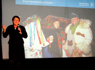 Organizowane są one Frankfurcie przed kościołem mariackim, w Poczdamie, na którym wystawcy z obu krajów oferują wyroby artystyczne i regionalne oraz w innych miejscowościach. Wspomniała o bardzo ciekawym „Bożym Narodzeniu po łużycku” w Spreewaldzie – imprezie na wyspie, na którą płynie się łodziami po tamtejszych kanałach. Jak również o innych miejscach i wydarzeniach turystycznych.