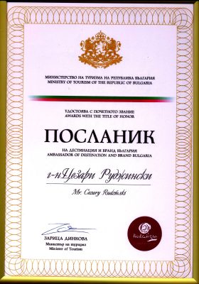 J.E. Pani Ambasador Margarita Ganewa po krótkim przedstawieniu jego działalności dziennikarskiej wręczyła mu w imieniu rządu bułgarskiego dyplom Honorowego Ambasadora Turystyki Bułgarskiej. Tytuł ten został mu nadany przez ministrę turystyki Bułgarii Zaricę Dinkową za promocję Bułgarii jako kierunku wyjazdowego i marki turystycznej.