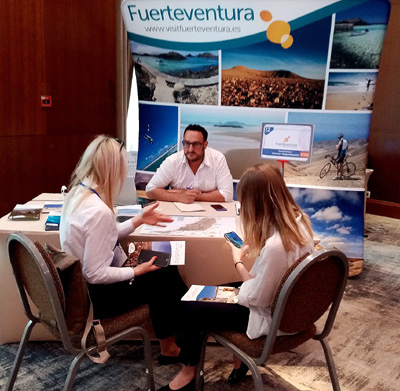 Na warszawski workshop przyjechała spora grupa hiszpańskich firm turystycznych m. in. z Katalonii: Generalitat Cataluna, https://experience.catalunya.com/en, Costa Brava https://en.costabrava.org/ i Lloret de Mar www.lloretdemar.org, oraz z Wysp Kanaryjskich; hotel Jardin Tecina dysponuje m.in. polem golfowym zaś grupa Landmar Hotels ma dwa wysokiej klasy obiekty na południu Teneryfy. Fuerteventurę www.visitfuerteventura.es reprezentował Florencio Gonzalez z firmy Hiszpania de Luxe, która prezentuje i udostępnia Hiszpanię. Tym razem przedstawiał on jedną z mniej znanych wysp Kanaryjskich – Fuerteventurę a zwłaszcza jej enoturystykę, ciekawą ze względu na sposób uprawy winorośli na tej wulkanicznej wyspie. Zana hiszpańska firma hotelowa Meliá Hotels International to duża sieć, blisko trzystu hoteli rozsianych po całym świecie, zaś sieć hotelowa Be Live Hotels posiada kilkanaście obiektów w Hiszpanii i na Karaibach. \