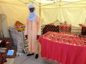 Obejrzeć w nich można – w dwu niezależnych – suknie, bluzki, szale i inne artykuły odzieżowe dla pań z narodowymi zdobieniami, a także wyborem pięknych wachlarzy. Czy regionalną biżuterię, ozdobne kilimy i inne artystyczne artykuły z dalekiego południa tego afrykańskiego kraju. Inny artysta prezentuje wyroby ze skór. Torby, torebki, ale przede wszystkim charakterystyczne, pięknie zdobione obuwie zarówno domowe, jak i wyjściowe.