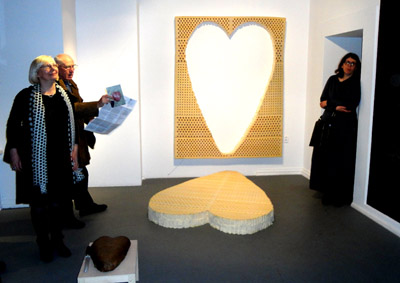 Na parterze Miejsca Projektów Zachęty są niemal wyłącznie serca różnej wielkości, wykonane z różnych materiałów. M.in. wycięte z falistego kartonu stanowiącego tło na ścianie, pod którą zostało ono położone. A także przestrzenne puzzle w kształcie serca złożonego z liter „V” (Vilnius) i dwu „W” – Wiedeń i Warszawa, czy rysunek „Serce krowy”.