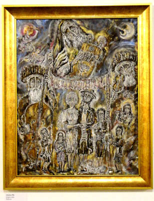 Wspaniałe jest też jego „Drzewo Życia” z 2007 roku. W dorobku ma też około 20 „kogutów”. Pysznych, barwnych, ale i przekształcających się w „czerwonego kura” – pożar. Malował również, chociaż rzadko, postaci historyczne. Władysława Jagiełłę ze sceną z matejkowskiego „Grunwaldu”. Króla Salomona grającego w szachy z polskim husarzem.