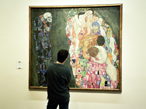 Znaczące dzieła, m.in. pokazany przeze mnie na zdjęciu „Śmierć i Życie” z lat 1910 – 1915, także Muzeum Leopoldów. Inny słynny obraz „Nuda Veritas” – „Naga Prawda” pokazany zostanie na wystawie w Austriackim Muzeum Teatru. Kolejne w Muzeum Wiedeńskim i Albertine, a ważne świadectwa dotyczące tego artysty i jego epoki w Muzeum Sztuki Stosowanej – MAK i Austriackiej Bibliotece Narodowej.