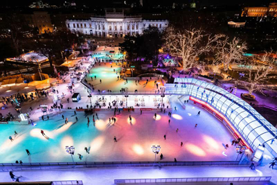 Przez nastrojowo oświetlony Park Ratuszowy wije się lodowa alejka, której fantazyjnie poprowadzona trasa zachwyca zarówno początkujących, jak i zaawansowanych łyżwiarzy.