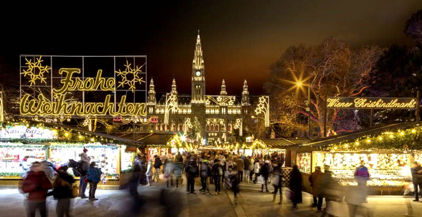 Wiedeński Jarmark Bożonarodzeniowy roztacza urok nadchodzących świąt, w czym duży udział mają świetlne dekoracje rozciągnięte na drzewach. Także wielką choinkę, którą co roku funduje inny kraj związkowy Austrii, zdobi około 2000 LED-owych światełek.