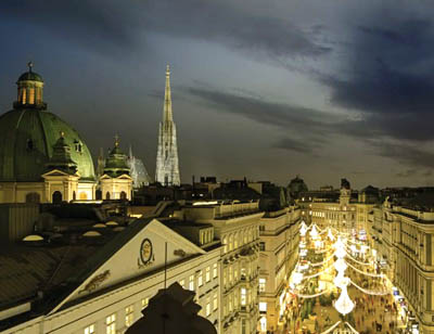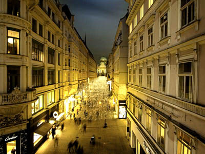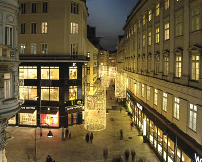 Imperialnie prezentuje się Habsburgergasse – mała boczna uliczka sąsiadująca z Graben. Oświetlają ją migoczące korony, nawiązujące do tych świetnych czasów, gdy Wiedeń był siedzibą cesarzy. Nad ulicą Kohlmarkt, która zaczyna się tam, gdzie kończy się Graben, a pod względem ekskluzywności w niczym mu nie ustępuje, pada delikatny złoty deszcz z drobnych lampek LED.
