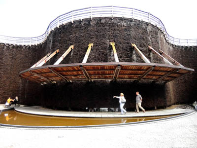 W rzeczywistości jest to konstrukcja wykonana z drewna modrzewiowego, które jest bardzo trwałe. W warunkach suchych może przetrwać nawet 1800 lat, a w wodzie około 500. Przy czym jako jedynie nie gnije w wodzie morskiej i słonej.