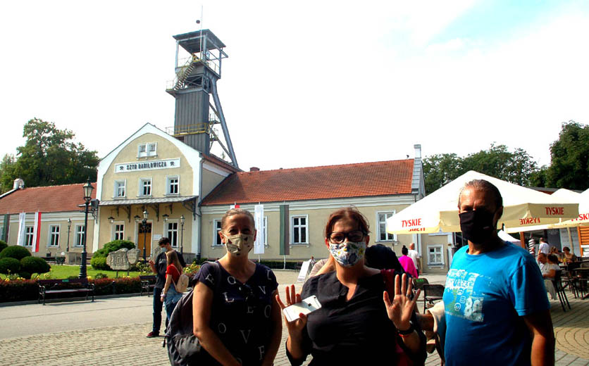 O umówionej godzinie przed wejściem do Szybu Daniłowicza, zgłębionego w latach 1635-1640, czekał na nas świetny przewodnik, Jan Kucharz, na co dzień nadsztygar górniczy. Jesteśmy wszyscy w obowiązujących w okresie pandemii maseczkach.