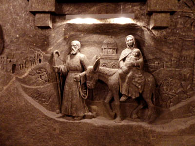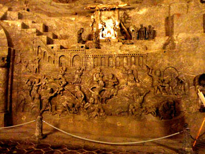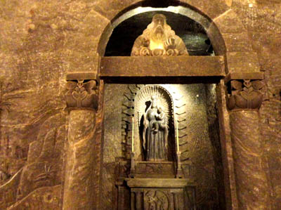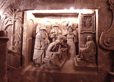 * Osobny, wielki temat, to rzeźbienie w soli. W relacji z trasy turystycznej wymieniłem sporo pięknych rzeźb i płaskorzeźb, głównie o tematyce sakralnej, w podziemnych kaplicach i komorach. To przede wszystkim dzieła uzdolnionych górników, tworzone w ciągu paru stuleci.