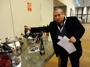 M.in. w Polsce, która może stać się dla nich rynkiem strategicznym. W drodze – jak stwierdził prezes – „zaprezentowania wspaniałości naszego winiarstwa”. Dodając, że: „Kryzys należy zwalczać jakością, innowacjami oraz umiejętnościami pozyskiwania nowych rynków, również tych najnowszych i dalekich…”. Degustacja po lunchu dała zaproszonym na prezentację możliwość poznania walorów przywiezionych win. Przypomnę: wybranych spośród gatunków nagrodzonych w tegorocznej edycji Werona Wine Top 2012.Przy czym nie była to klasyczna degustacja z prowadzącym somelierem, opisem wina które będzie degustowane, wylewaniem jego nadmiaru, zwłaszcza gdy smakuje mniej, do specjalnych naczyń itp. Po prostu na stołach postawiono i otworzono dziesiątki butelek win. Te, które tego wymagały, w pojemnikach z lodem.