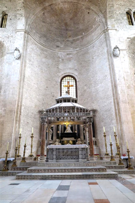 Nieukończoną jeszcze budowlę poświęcono w r. 1197 i przeniesiono do niej szczątki świętego. Bari to jedyna miejscowość we Włoszech, gdzie obchody ku czci św. Mikołaja odbywają się dwa razy do roku: w maju, czyli w rocznicę przybycia relikwii do miasta, oraz 6 grudnia – w dniu jego śmieci. Bazylika San Nicola jest największym sanktuarium świętego Kościoła katolickiego i prawosławnego.