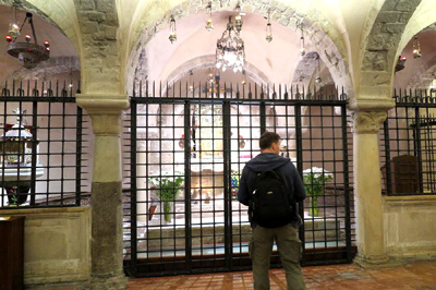 Za XII-wiecznym cyborium ołtarza głównego bazyliki, na wklęsłej ścianie absydy, od 1593 r. znajduje się grobowiec z białego i czarnego marmuru Bony Sforzy, żony Zygmunta Starego i matki Zygmunta Augusta. Mauzoleum ufundowała jej córka, Anna Jagiellonka. Na lwich łapach spoczywa czarny sarkofag, na którym klęczy postać królowej. Bona jest przedstawiona jako osoba w starszym wieku.