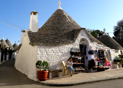 Te wyjątkowe budowle w Alberobello to będące dziedzictwem ludzkości trulli. Jest ich tam – bagatela – ponad półtora tysiąca! Już jadąc przez włoską dolinę Itrii, można się przyjrzeć trulli (l.mn., l.poj. – trullo). Sporo ich bowiem stoi tuż przy drogach do Alberobello czy na czerwonobrunatnych polach.