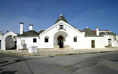 Teraz zaś muzeum pokazujące codzienne życie w trullo. Wyjątkowe jest też trulli Siamesi (syjamskie). Ponoć mieszkali w nim dwaj bracia zakochani w tej samej dziewczynie. Choć była obiecana starszemu, pokochała młodszego i z nim się związała. Początkowo mieszkali pod jednym dachem – w jednej izbie. Jak łatwo przewidzieć, dom trzeba było rozbudować.